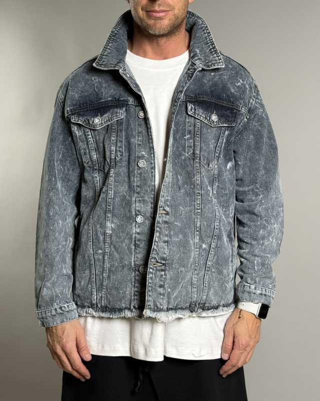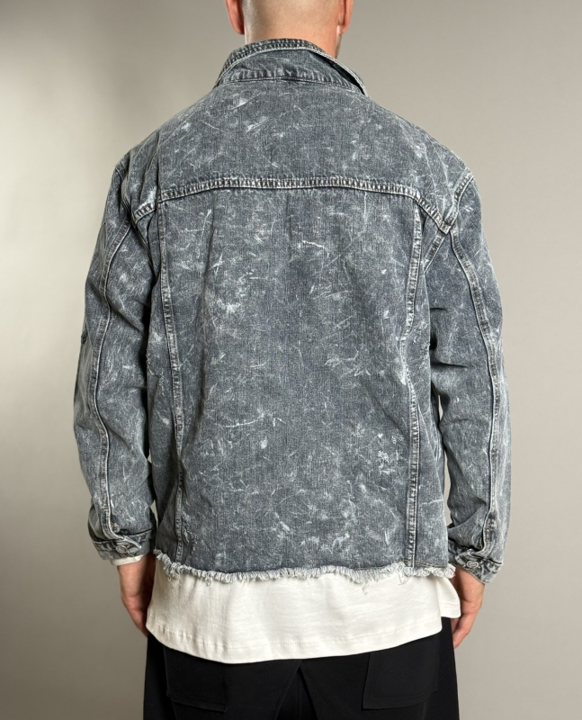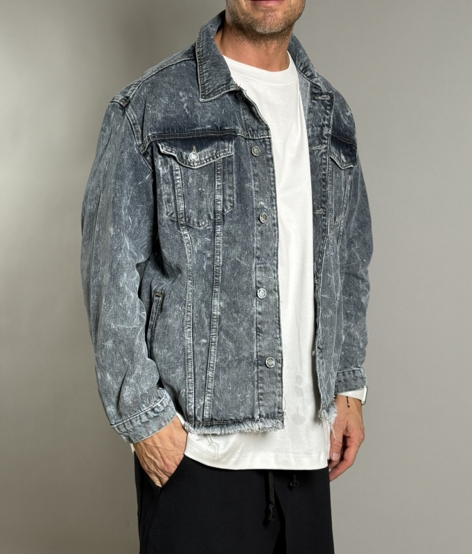 Дизайн: Изпран сив деним с неравномерно избелял винтидж ефект и скъсен подгъв с ръб тип “raw edge”. Класически предни джобове с капаци и метални копчета.
