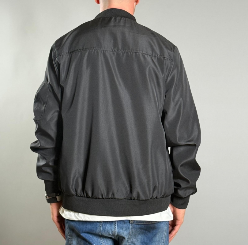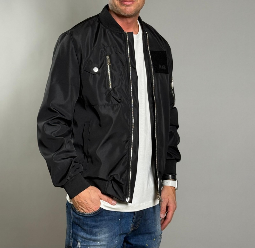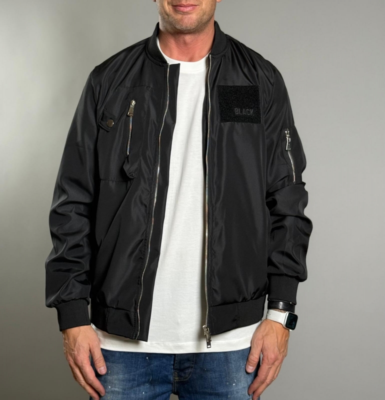 Мъжко бомбър яке в черно с детайли в милитъри стил.